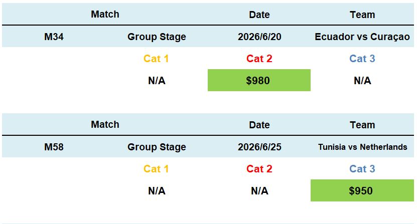 *All 2026 World Cup ticket sale will need double confirm the seat is still available, and all tickets are final sale.