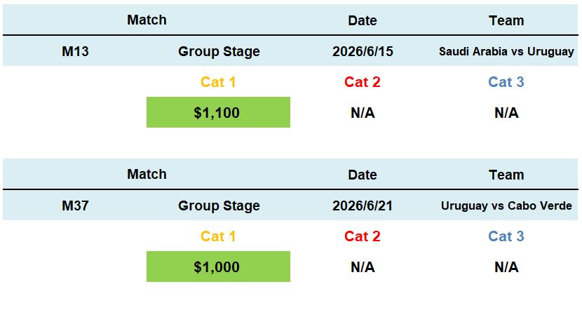 *All 2026 World Cup ticket sale will need double confirm the seat is still available, and all tickets are final sale.
