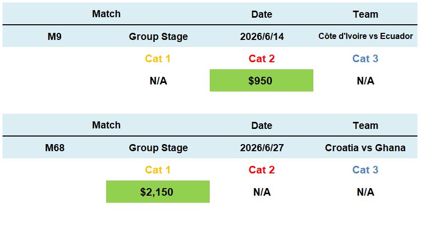 *All 2026 World Cup ticket sale will need double confirm the seat is still available, and all tickets are final sale.